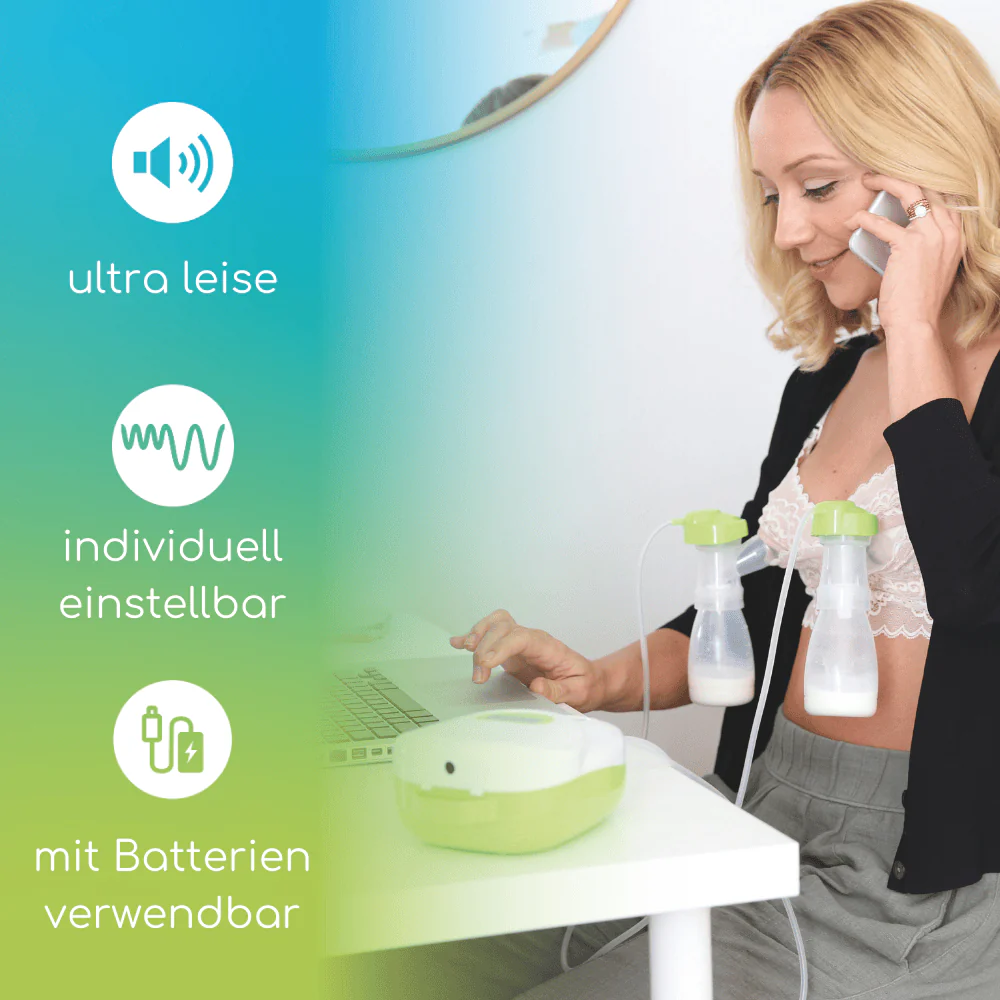 - Extrem leise – für diskretes, entspanntes Abpumpen.